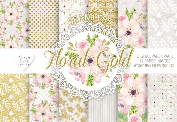 Watercolor Gold Roses Flowers Digital Paper Flower Etsy