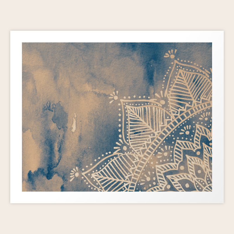 Mandala Flower On Watercolor Background Neutral Art Print By