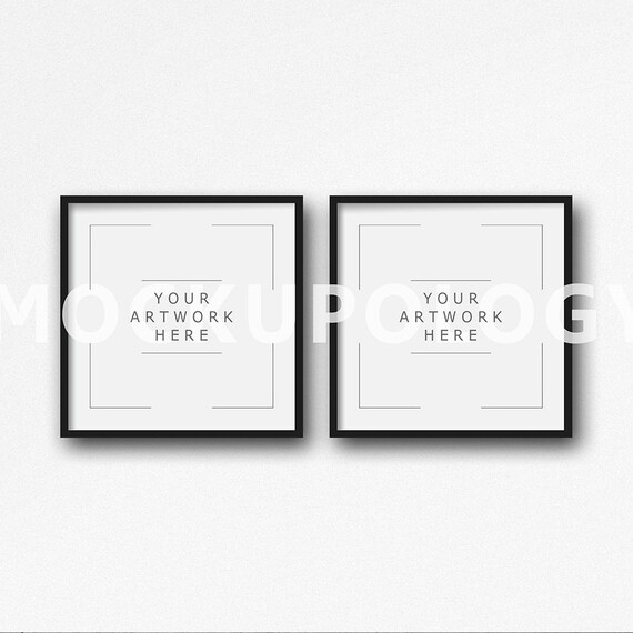 Square Set Of Two Digital Black Frame Mockup On White Plain Etsy