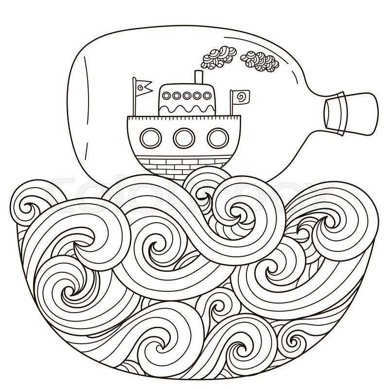 Ship In A Bottle Line Drawing
