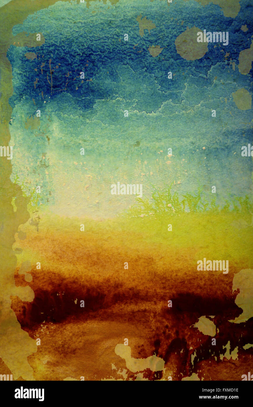 Abstract Watercolor Textured Background Summer Themed Landscape