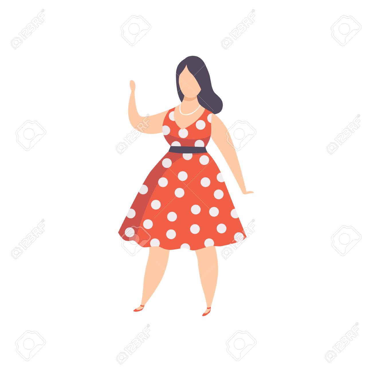 Curvy Overweight Girl In Red Polka Dot Retro Dress Beautiful