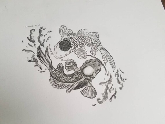 Yin And Yang Koi Fish Graphite Pencil Sketch Etsy