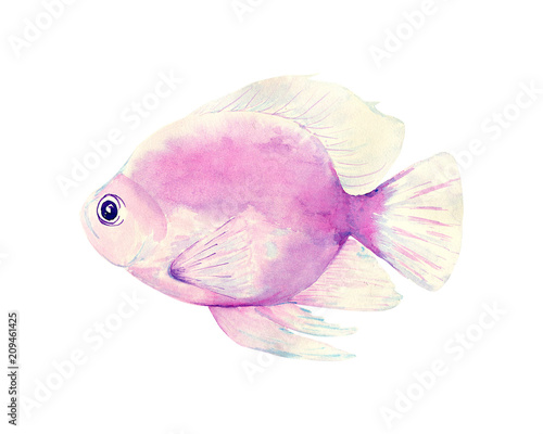 Ropical Fish On A White Background Watercolor Painting Handmade